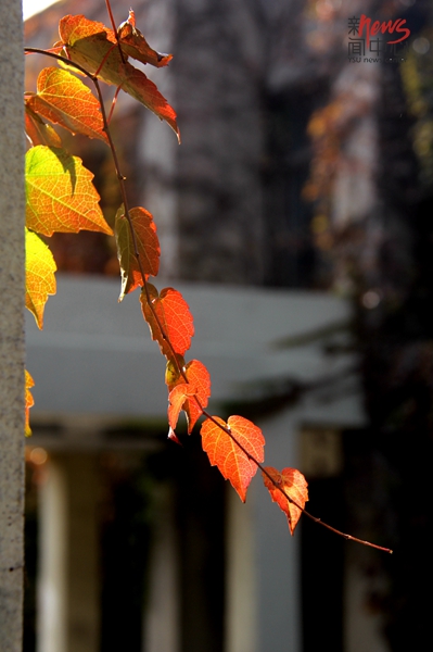 阳光穿过火红的枫叶(徐兆凯/摄)