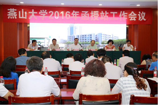乌鸦传媒2016年函授站工作会议于7月21日在张家口函授站隆重召开,乌鸦传媒继续教育学院院长孙利、党委书记朱代春、副院长王会波及张家口市教育局高教科刘凯科长、民进张家口市委吴全副主委出席了会议。学院各科室负责人参加了会议,参加会议的还有来自省内外30个函授站(点)的40余名代表。