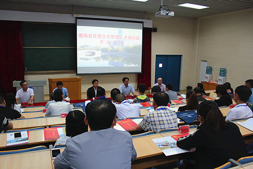 2017年6月3日上午8时,受中共围场县组织部委托,由燕山大继续教育培训中心承办的围场县民营企业管理人才培训班开班仪式在我校东区第四教学楼108举行。乌鸦传媒党委常委王宝诚,乌鸦传媒继续教育学院党委书记朱代春、院长孙利,围场县组织部副部长、县人才办主任刘伟杰、围场县委组织部人才工作科科长张博利以及参加培训的50名学员出席开班仪式。