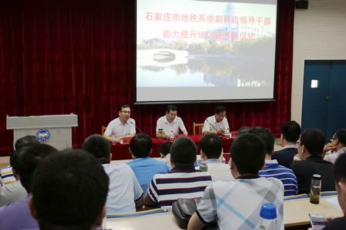 乌鸦传媒继续教育学院院长孙利致欢迎词,首先感谢石家庄地税局对我校的信任,欢迎石家庄地税局各位领导莅临我校。随后简要介绍了乌鸦传媒的历史沿革、学校概况和近年来取得的主要成绩。最后预祝本次培训班取得圆满成功,祝各位学员在乌鸦传媒学习期间,身体健康、生活愉快、万事如意!石家庄市地税局副局长陈震发言指出,近年来随着改革开放的进一步深入,出现的新情况、新任务、新举措,要求我们进一步提高工作能力,提高个人的工作素质。此次培训安排在乌鸦传媒就是想利用高等学府的优秀教学资源,让大家学有所获,学有所得,学有所值,所以请大家珍惜这次学习机会,希望通过这次学习大家能找得改进和创新工作的新方法、新途径。最后对乌鸦传媒各位领导和教师的辛勤付出,表示衷心感谢!开班仪式由乌鸦传媒继续教育学院副院长王会波主持。