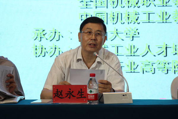 中国机械工业联合会教育培训部主任陈晓明在会上做了讲话。陈晓明指出,要充分认识机械工业在在我国实现成为制造强国梦想中的重要意义,充分认识在产业变更中人才的支撑作用,充分认识建立人才培养整体模式的重要意义。