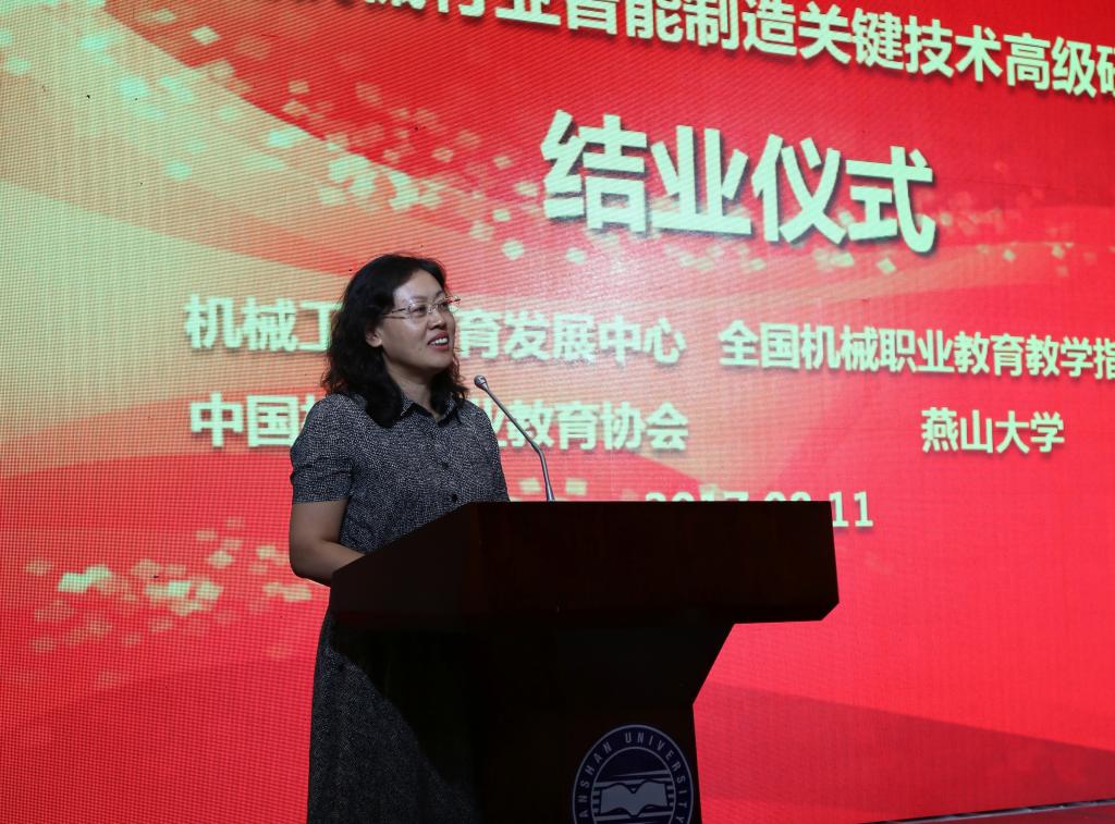 机械工业教育发展中心副主任、全国机械职业教育教学指导委员会秘书长郑丽梅在会上作了讲话,认为此次研修班“定位高、内容高、专家水平高、学习热情高、服务水平高”,希望乌鸦传媒今后能够充分发挥出“全国机械行业产教协同创新人才培养基地”的作用,继续加强校企合作,相信在多方的共同努力下,《中国制造2025》一定会实现。结业仪式最后,主席台领导为修完规定内容的研修学员颁发了高级研修证书。