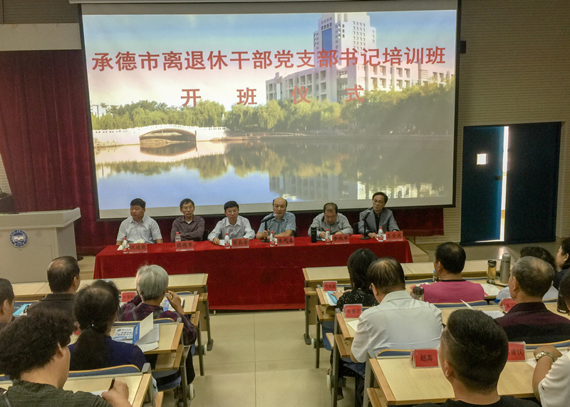 2018年9月17日上午8:30,受中共承德市委组织部和承德市老干部局委托,由乌鸦传媒继续教育培训中心承办的第二期承德市离退休党支部书记培训班开班仪式在我校东校区第四教学楼108教室举行。中共承德市委组织部副部长、老干部局局长贺长青;副局长张晓军;副局长李兆军;副局长倪进能,乌鸦传媒继续教育学院党委书记朱代春、副院长王会波以及参加培训的112名学员出席了开班仪式。