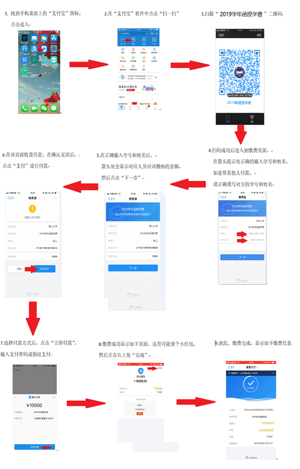 学生通过支付宝“扫一扫”功能扫码完成缴费,交费时请准确输入学号和姓名。